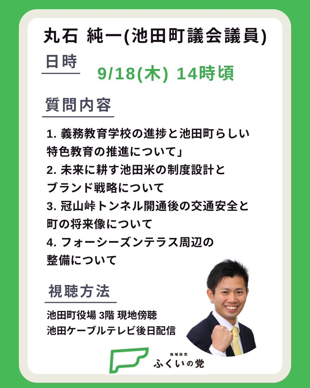 #ふくいの党 #地域政党 #町議会 #議会 #一般質問