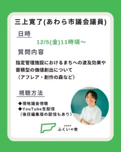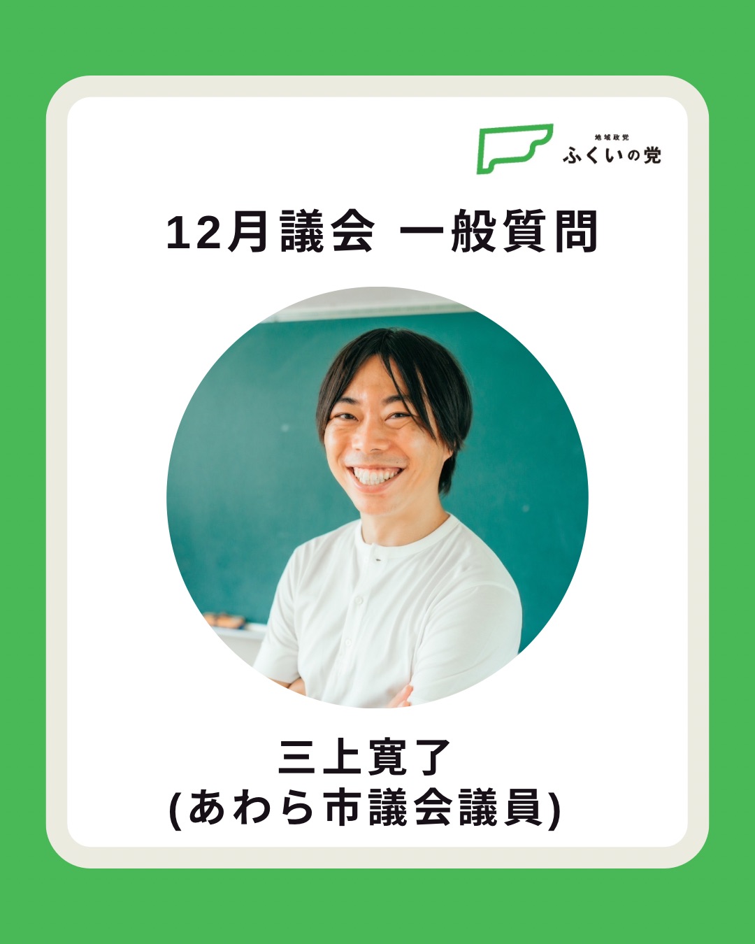 【12月議会 一般質問 三上ひろあき あわら市議会議員】